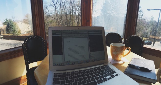 I got a vanilla latte, my favorite place by the window, and a big burst of Molly motivation. And with that and the flip of my laptop, I had begun the long four and a half hour session of researching articles and writing about very boring things.
